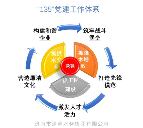 ? ? ? ? ?濟南市清源水務(wù)集團堅持以習(xí)近平新時代中國特色社會主義思想為指導(dǎo),堅決貫徹落實習(xí)近平總書記對山東、對濟南工作的重要指示要求,踐行初心使命,提振奮斗精神,堅持穩(wěn)中求進、勇毅前行、攻堅克難,高效統(tǒng)籌推進安全供水中心任務(wù),聚力工程項目建設(shè)。集團黨委著力構(gòu)建“黨建賦能+創(chuàng)新驅(qū)動”格局,創(chuàng)新“135”黨建工作體系,做實黨建與業(yè)務(wù)“雙融共促”,以高質(zhì)量黨建為企業(yè)高質(zhì)量發(fā)展掌舵鑄魂。
